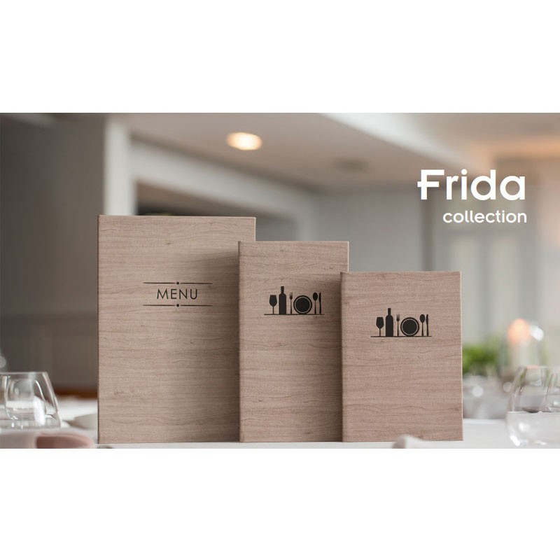 Portamenús collezione Frida realizzati in finta pelle con il calore di tenuta in colore nero e maniche fissa in PVC. Ideale per l'ospitalità e la ristorazione. Dimensioni tra cui scegliere.