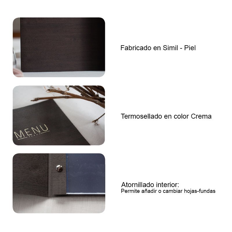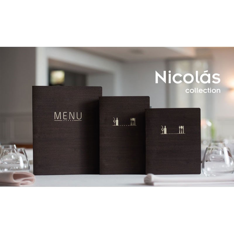 Portamenús collezione di Nicolas realizzato in finta pelle, flessibile, di calore di tenuta in un colore crema e maniche in PVC filettata interna. Ideale per l'ospitalità e la ristorazione. Dimensioni tra cui scegliere.