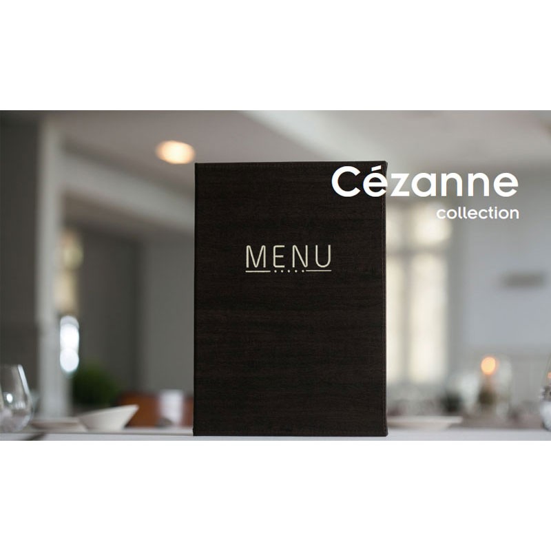 Portamenús collezione Cézane realizzato in finta pelle, flessibile, di calore di tenuta in un colore crema e i lembi fissato al coperchio. Ideale per l'ospitalità e la ristorazione. A4 formato: 23x32 cm