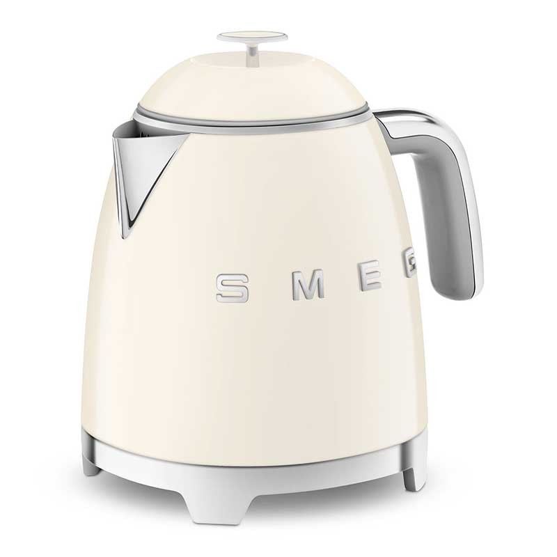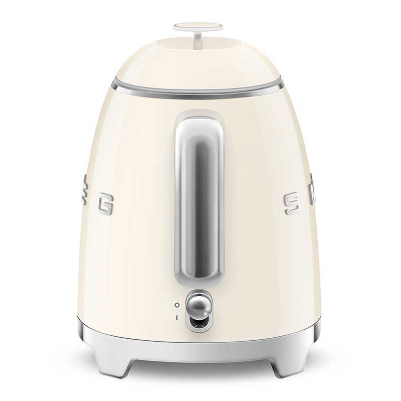 Mini bollitore da 0,8 litri stile Smeg 50 con corpo in plastica crema lucida e base girevole a 360º.
