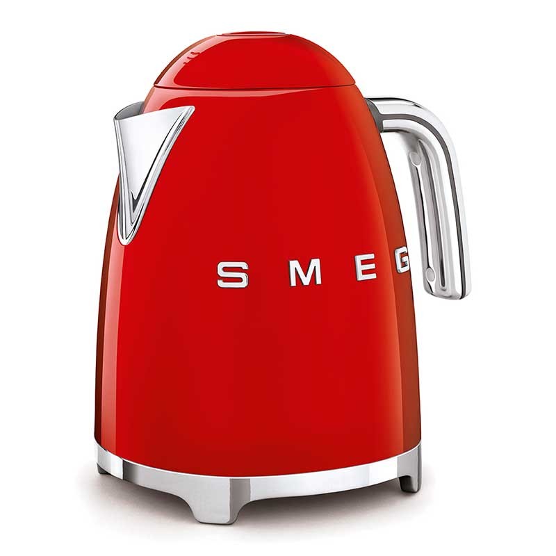 Bollitore standard Smeg 50's Stile di 1,7 litri di capacità con corpo in acciaio inox finitura rosso lucido e base girevole a 360°.