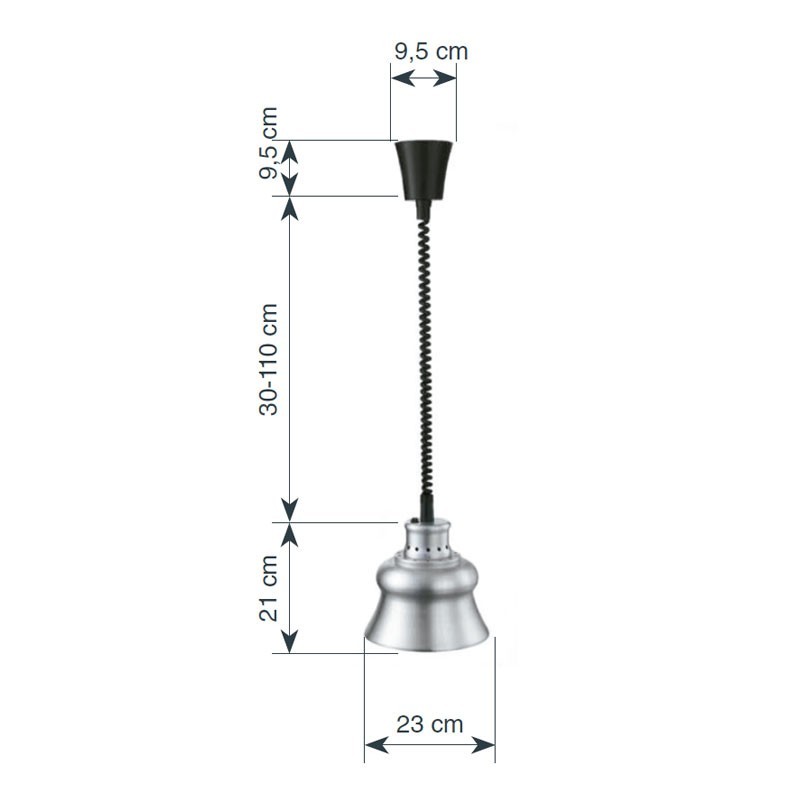 Lampada di riscaldamento infrarossa di un tetto con cavo estensibile e 275 W per mantenere i piatti caldi nelle cucine professionali, catering e buffet.