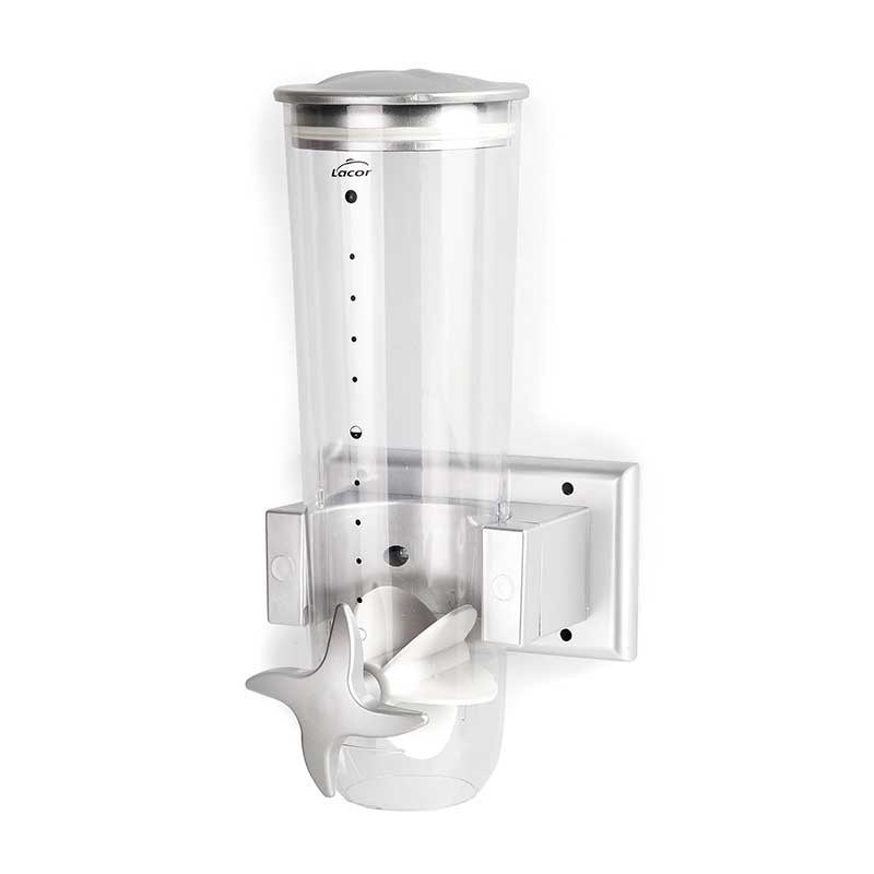Dispenser cereali sistema a parete con rotazione di consegna, di facile utilizzo. Ideale per i cibi come cereali, farina d'avena, pasta, caffè, frutta secca, ecc
