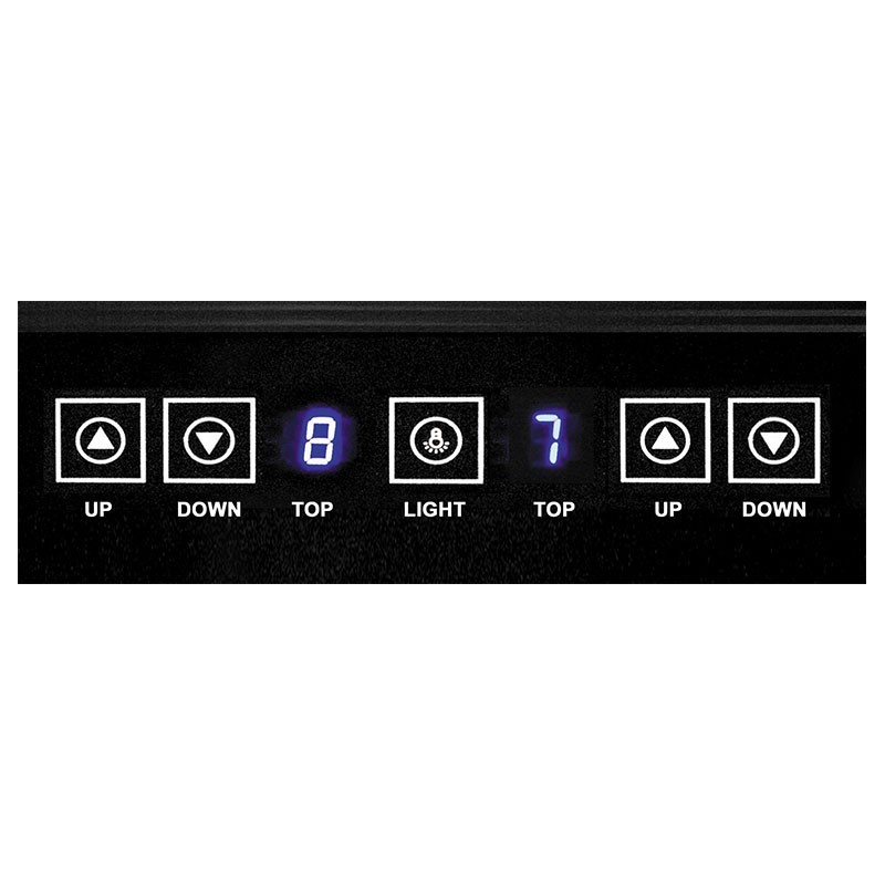 La temperatura all'interno del cabinet cooler dipenderà dalla temperatura ambiente all'esterno del cabinet. Per i vini rossi il range di temperatura ideale è tra i 14 e i 16 ° c, mentre per i vini bianchi o spumanti, si raccomanda che essi sono tra i 6 e i 10.5 ºC. La temperatura interna può essere regolato facilmente attraverso il controllo elettronico della temperatura nella parte superiore del mobile.