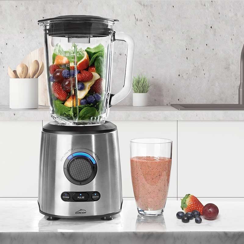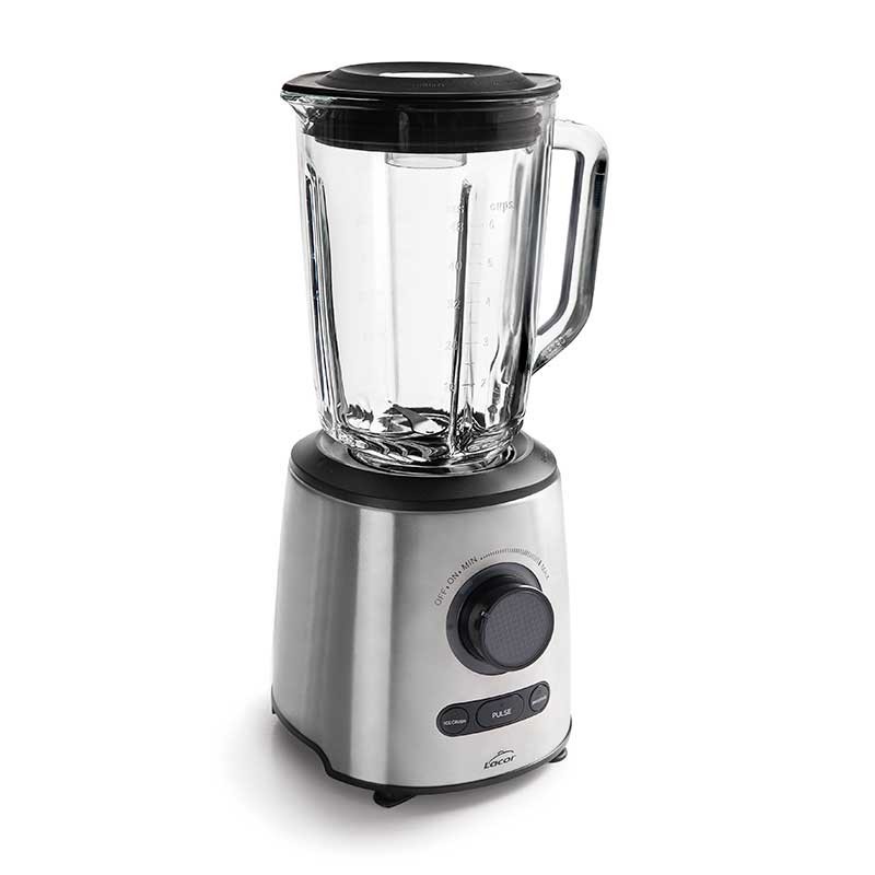 Potente mixer elettrico 1000 W, con controllo variabile della velocità, corpo in acciaio inox e vaso di vetro borosilicato.