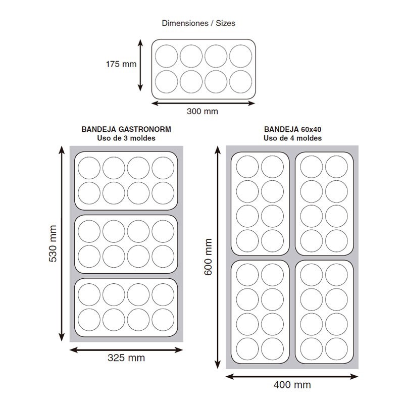 Stampo mini bordelais, con 18 buche Ø2,5x3 cm realizzato in silicone di serie Pastryflex.