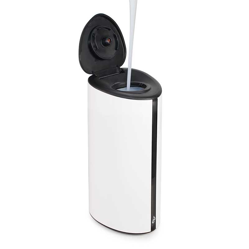 Dispenser automatico per sapone o gel idroalcolico realizzati in ABS di colore argento con polietilene serbatoio di 850 ml di capacità.