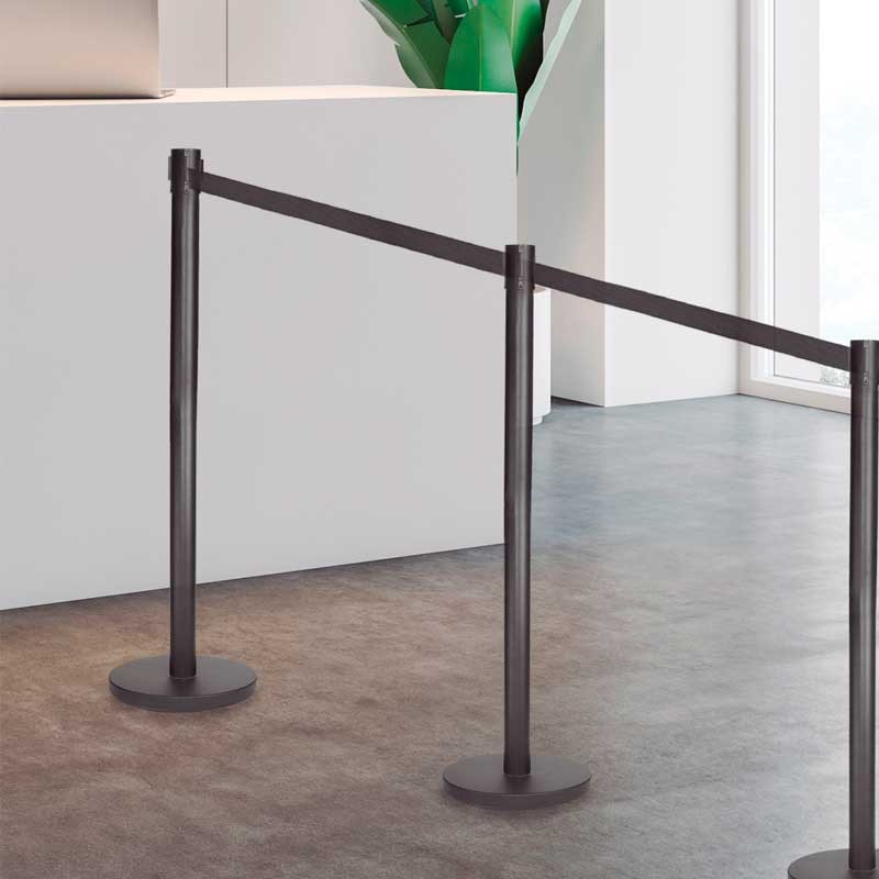 Post black metal, da un'altezza di 90 cm con nastro di 2 metri di lunghezza e meccanismo a scomparsa per rifinire o limitare l'accesso in luoghi pubblici.