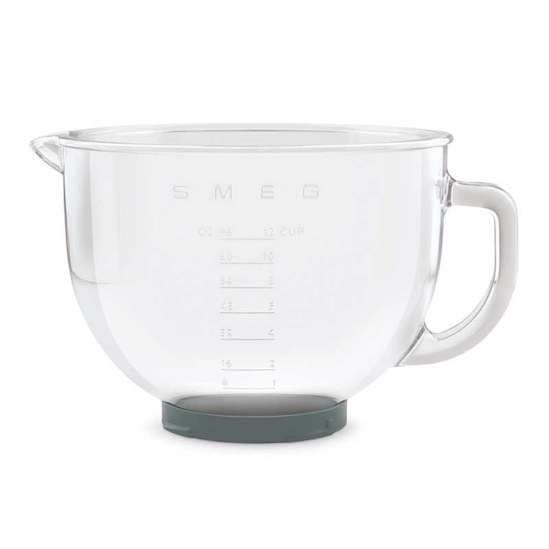 Ciotola in vetro da 4,8 litri di capacità compatibile con i robot da cucina modello Smeg 50 stile SMF02 e SMF03. Dimensioni: 168x237x254 mm.