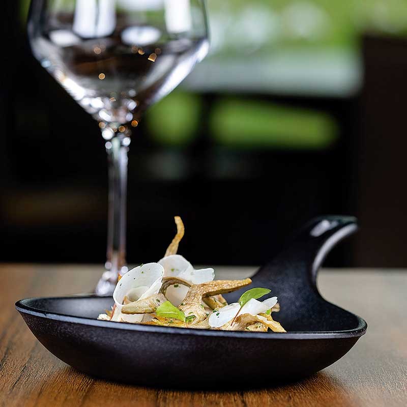 Mini padella resina modello Magma con un aspetto naturale come la ghisa. Ideale per servire e presentare i piatti più squisiti.