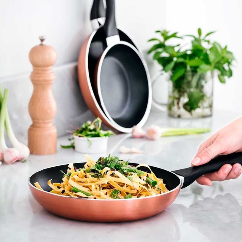 Tegame di alluminio modello GARINOX con rivestimento antiaderente doppio strato rinforzato, resistente ai graffi e graffi.