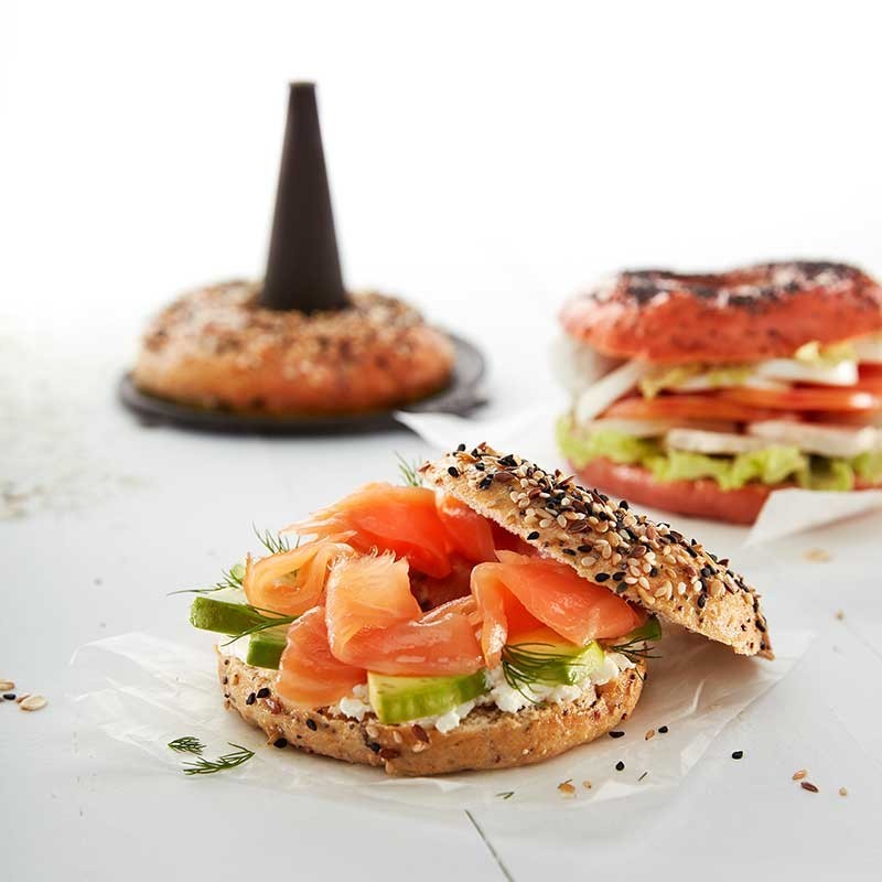 Si può mettere un tocco al vostro Bagel decorándoles con sesamo o semi di papavero, per esempio, o anche sale di origine vulcanica. Incorpora anche le verdure alla pasta per dare un colore diverso, ispirati con le nostre ricette Ciambella con pomodori secchi, o spinaci.