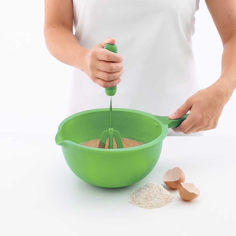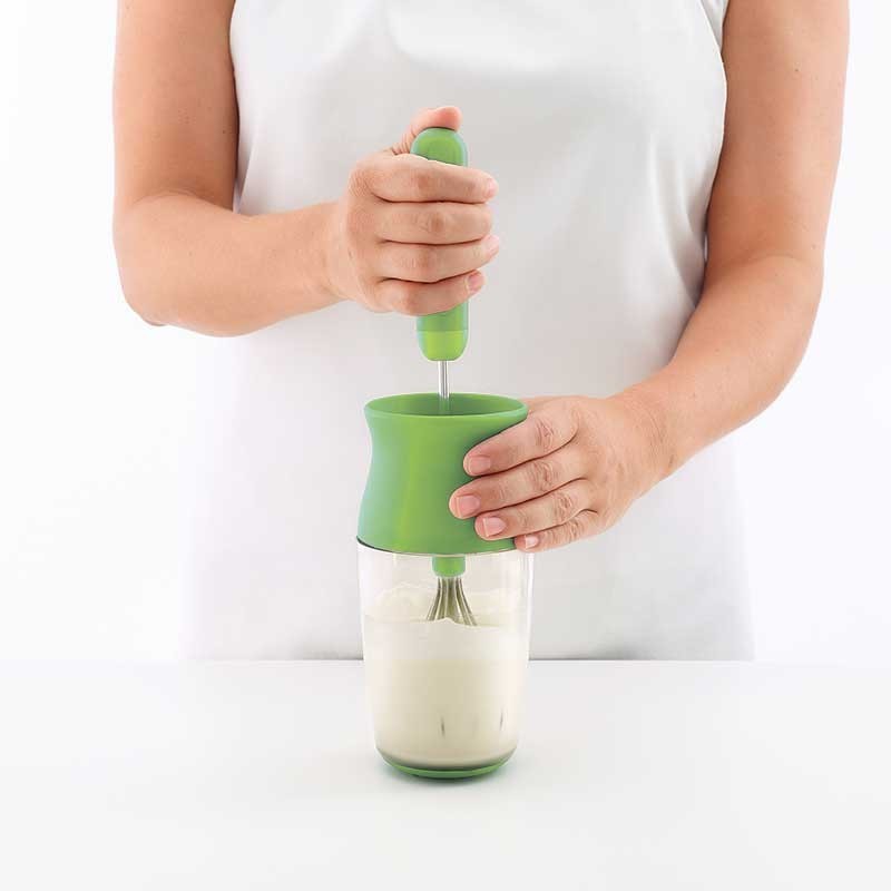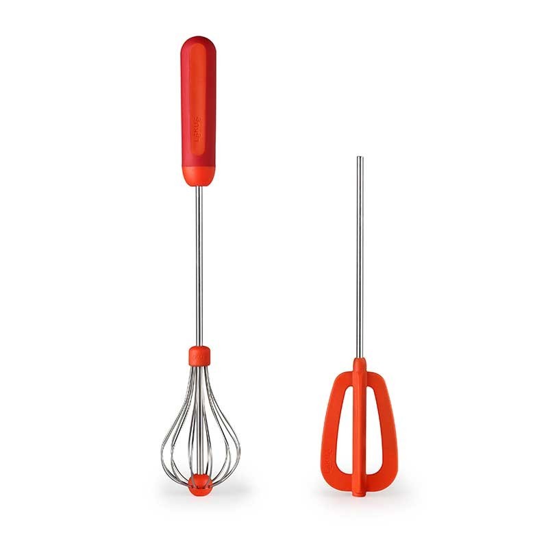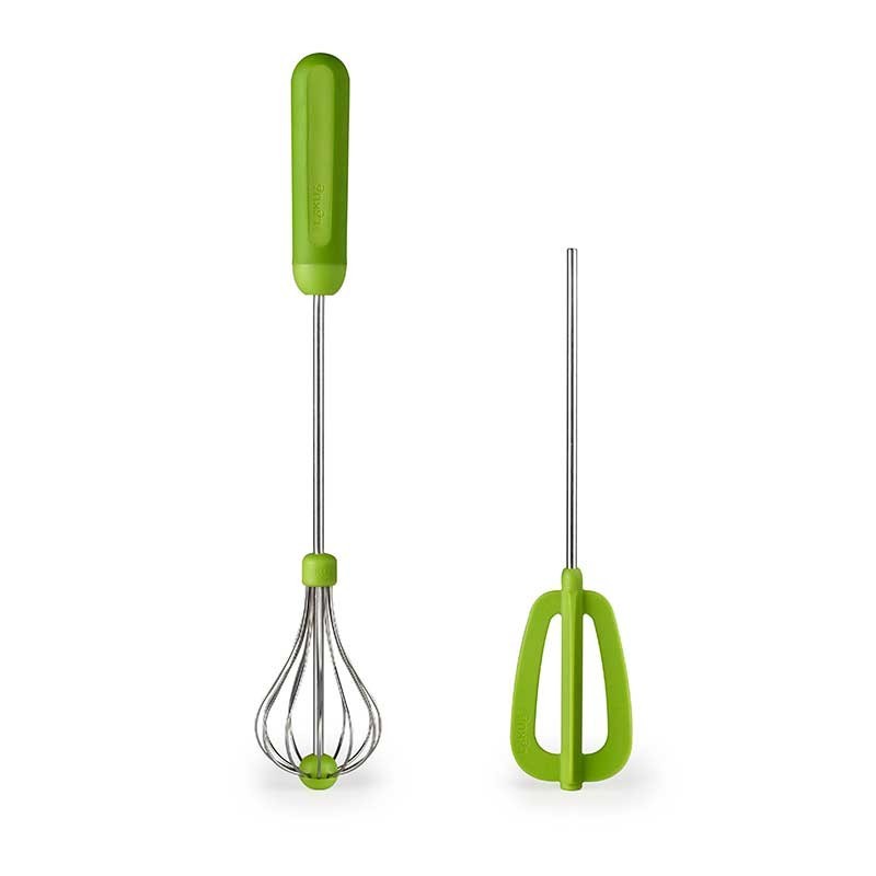 Questo set di 2 testine intercambiabili permette di mescolare e montare in modo rapido e senza sforzo. Il manico ergonomico consente una presa migliore e una maggiore stabilità.