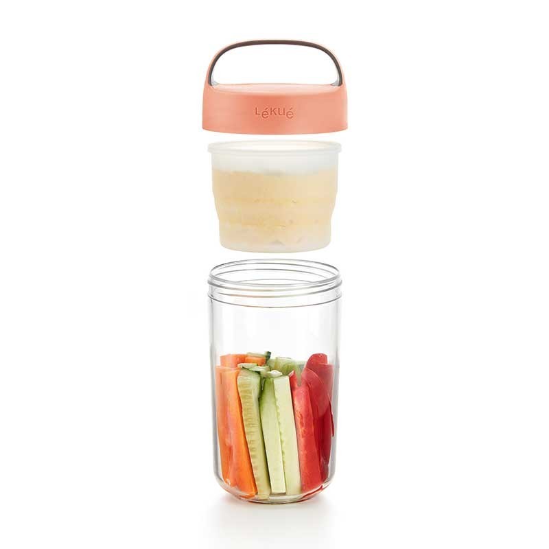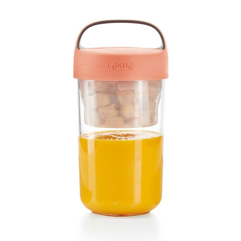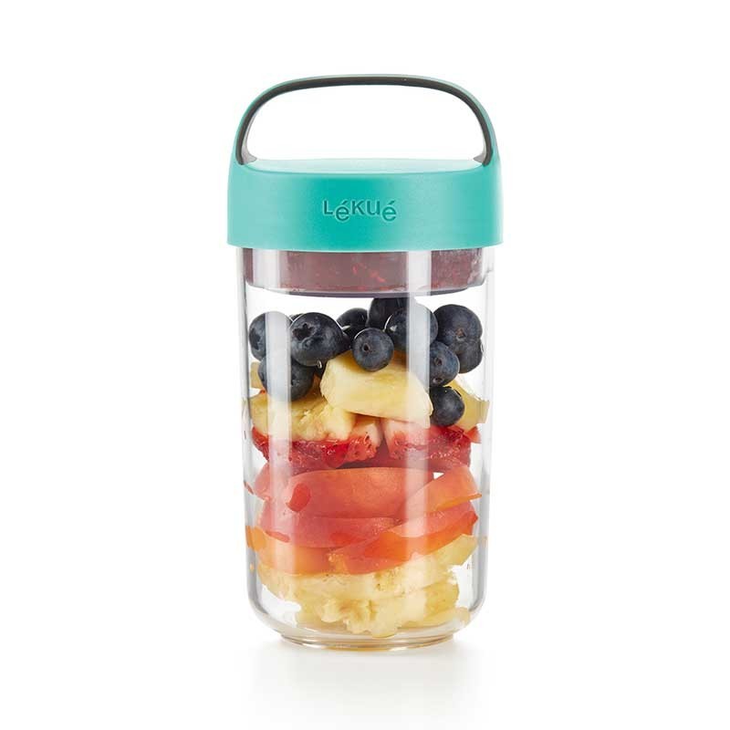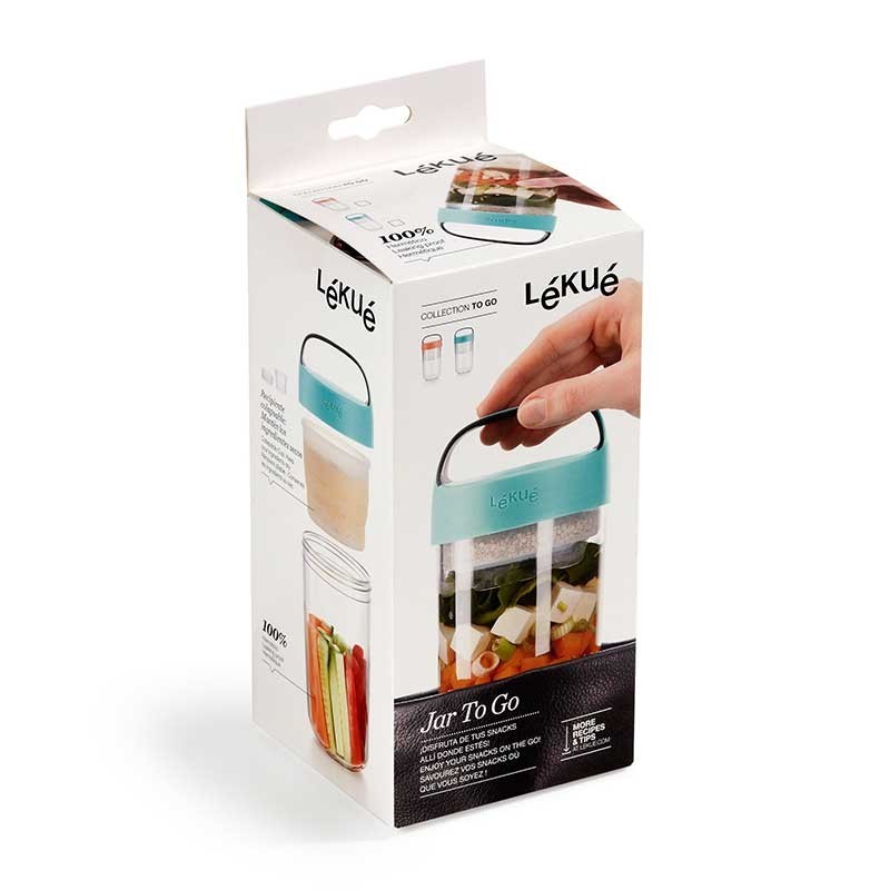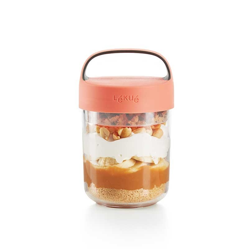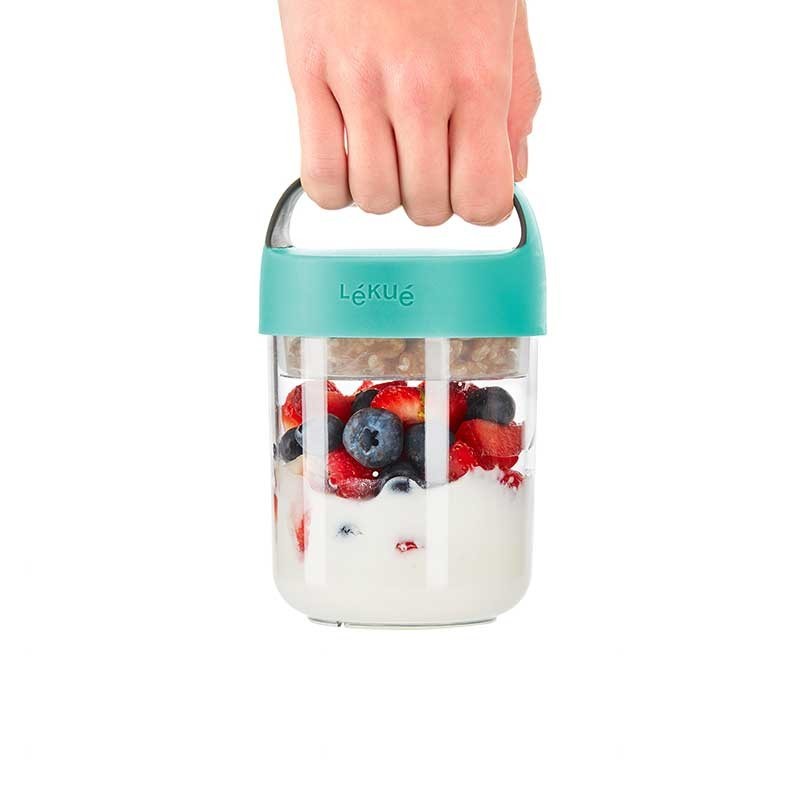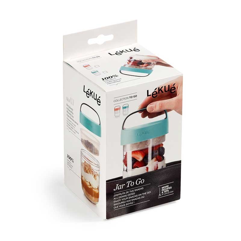 Il Vaso Di Andare è perfetto per la realizzazione di snack, creme, dolci e godere di loro, nello stesso contenitore. Include un contenitore di vetro, pieghevole per mantenere gli ingredienti secchi separatamente.