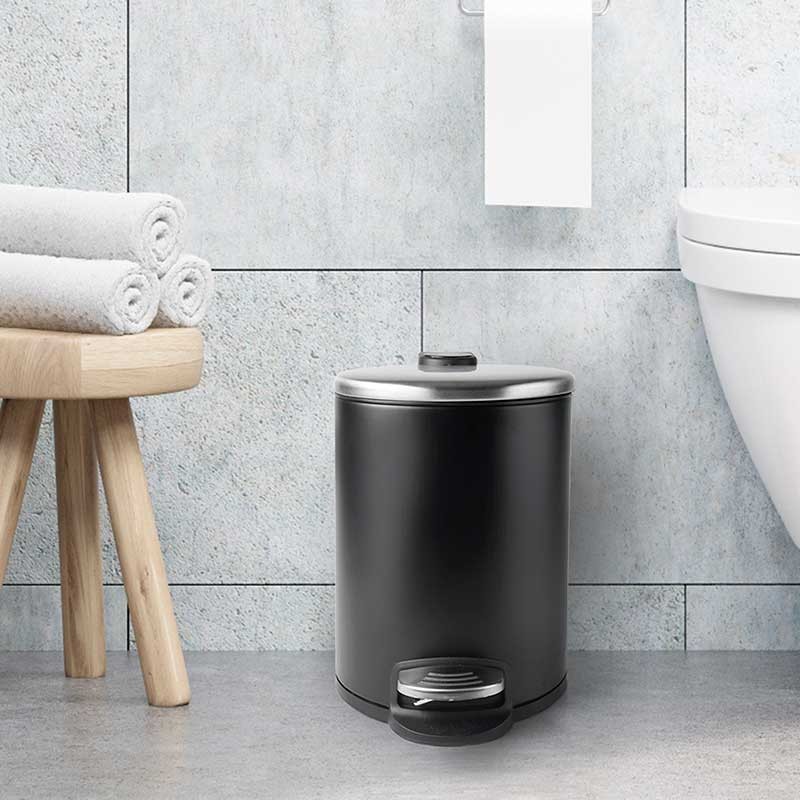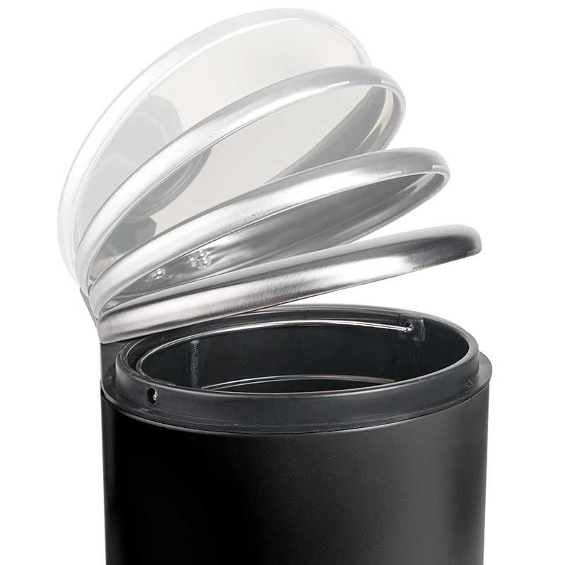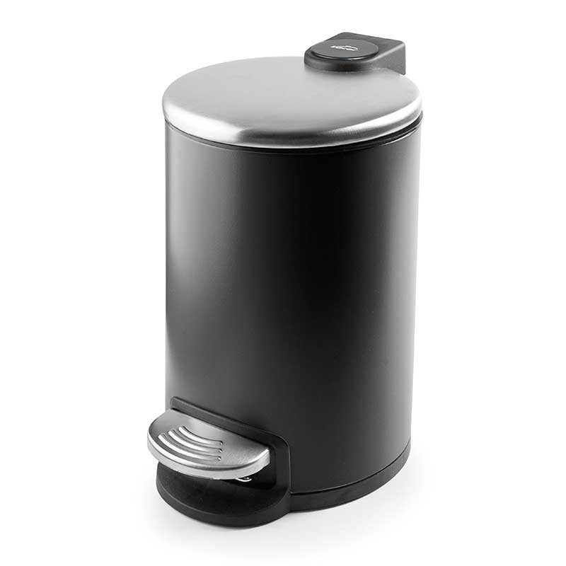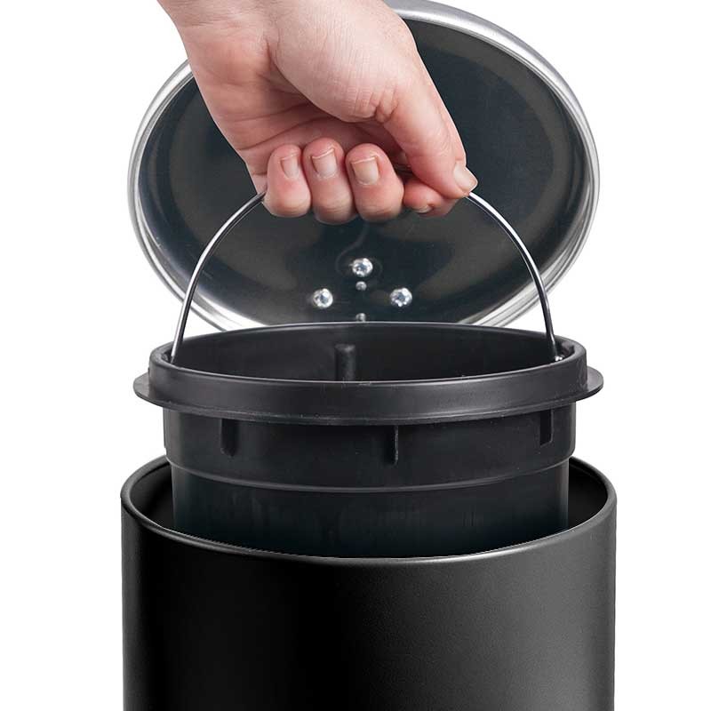 Bin 3 litri in acciaio inox di colore nero con apertura coperchio a pedale e secchio interno rimovibile, manico in polipropilene.