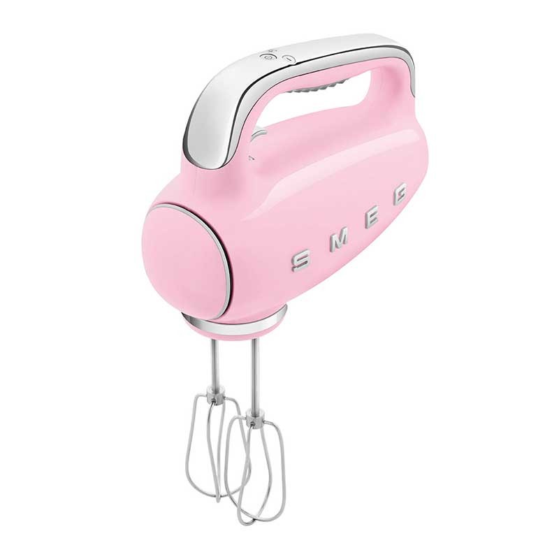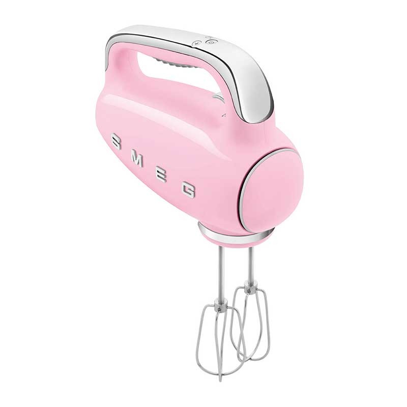 Elettrico stick blender Smeg 50's stile finitura rosa lucido con 250 W di potenza, 9 livelli di velocità e funzione turbo.