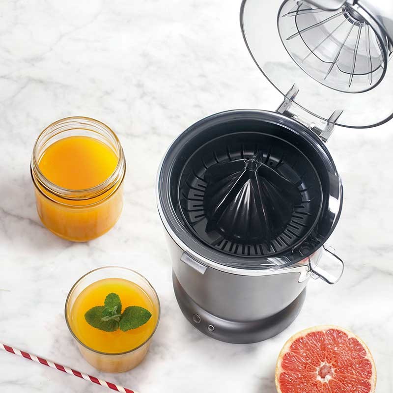 Spremiagrumi completamente automatico 60W. Grazie alla sua tecnologia innovativa, il frutto è spremuto premendo un solo pulsante.