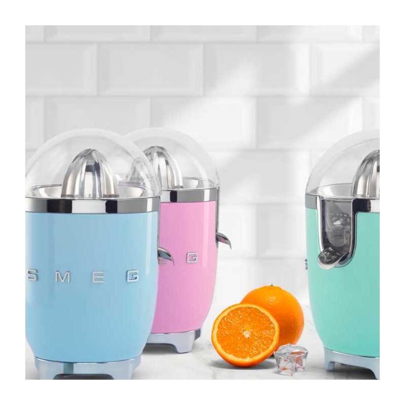 Lo spremiagrumi Smeg vanta le particolari linee curve della gamma Stile anni ' 50 ed è disponibile in un'ampia gamma di colori.