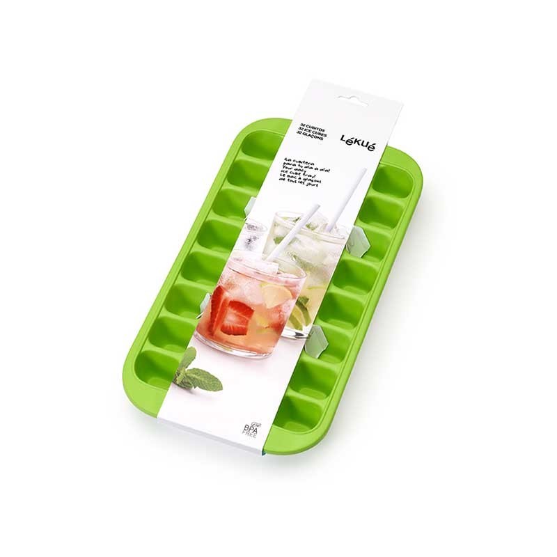 Secchio in gomma flessibile per fare fino a 32 cubetti di ghiaccio piazza. Include vassoio di PP, che lo rende facile da trasportare per il congelatore.