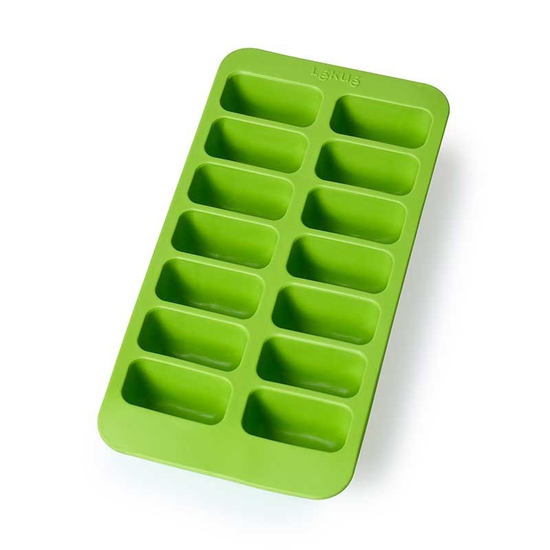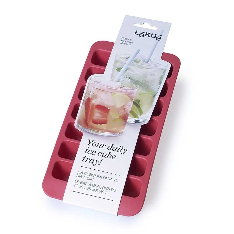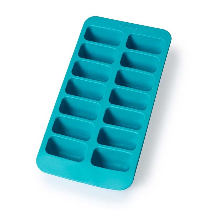 Secchio in gomma flessibile che facilita il rilascio dello stampo per la realizzazione di 14 cubetti di ghiaccio con una forma rettangolare.