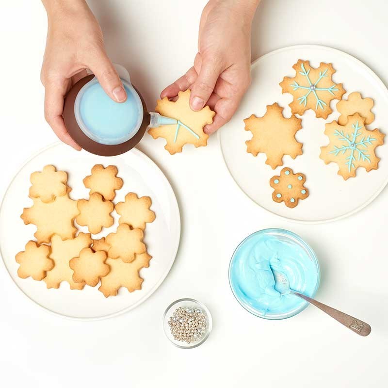 Let it Snow! Let it Snow! Divertirsi, decorare e godere. 19 biscotti a forma di fiocco di neve di un singolo taglio, in modo molto facile e veloce. Per godere in famiglia o con gli amici, fare dei biscotti da regalare o condividere. La sua semplicità permette ai bambini di partecipare alla preparazione della ricetta, inoltre, sfrutta molto di più di massa, dal momento che la muffa non consentono di lasciare spazi tra cookie e cracker.