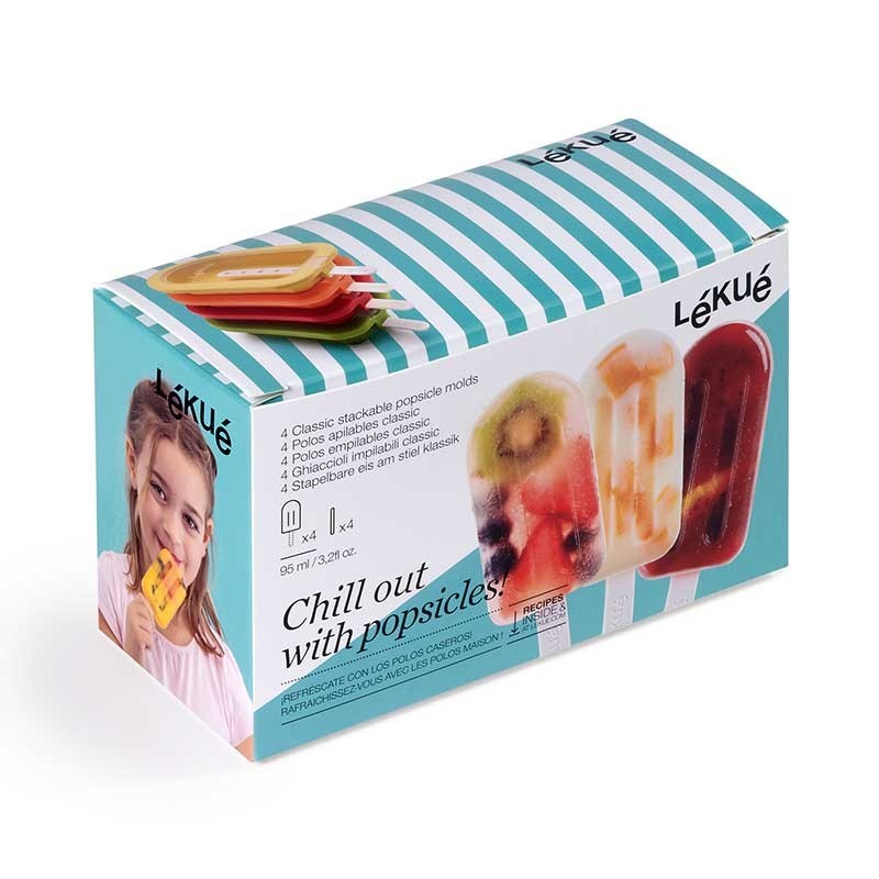 Pack di 4 stampi impilabile in silicone flessibile e riutilizzabile per preparare facilmente il vostro proprio polo di casa in porzioni individuali.