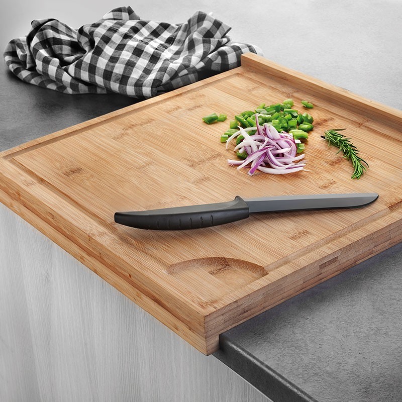 Tagliere reversibile con tappi per controsoffitto in fibra naturale di bambù di alta qualità, robusto e resistente. Misure: 39,5x38x4 cm