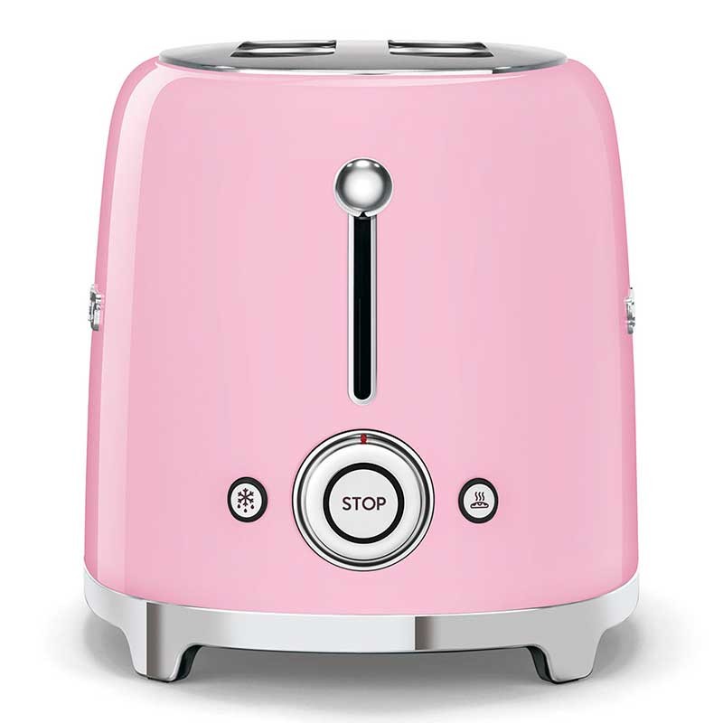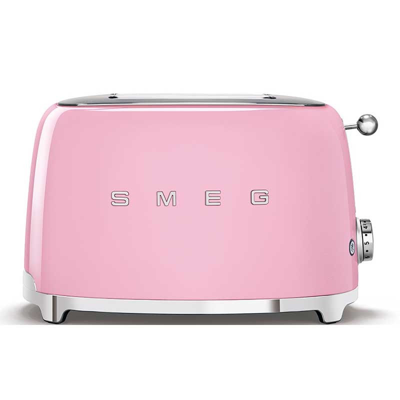 Tostapane stile Smeg 50 con corpo in acciaio inox rosa lucido con 6 livelli di riscaldamento e 2 slot per 2 toast.