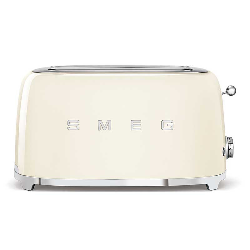 Tostapane stile Smeg 50 con corpo in acciaio inox gloss cream con 6 livelli di riscaldamento e 2 slot per 4 toast.
